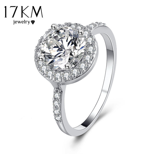 Big Round Cubic Zirconia Rings Fashion Wedding Jewelry Female Engagement Ring For Women Crystal Silver